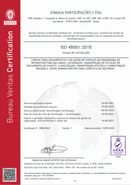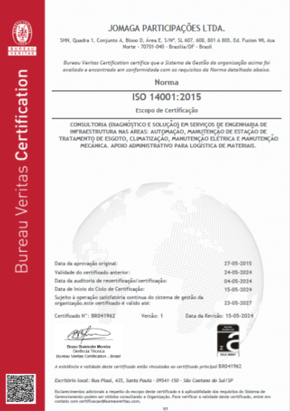 Com a visão empreendedora, a JOMAGA se certifica no Sistema de Gestão Integrado (SGI), e é chancelada pelo órgão certificador Bureau Veritas. Um divisor de águas e grande diferencial por ser uma empresa detentora de certificações de qualidade ISO 9001, ISO 14001 e ISO 18001.
