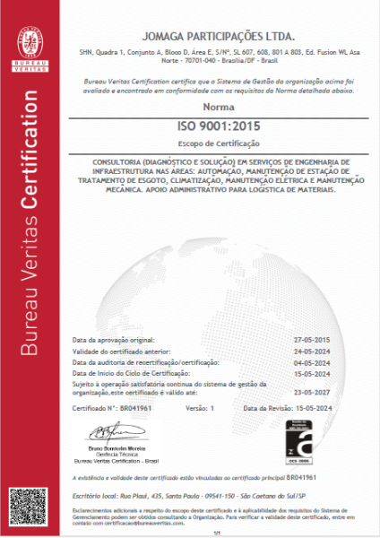 A JOMAGA possui como um diferencial no mercado, seu Sistema de Gestão Integrado (SGI) atestado com certificações que a qualificam a prover soluções com eficiência e confiabilidade. Consulte abaixo nossas certificações: